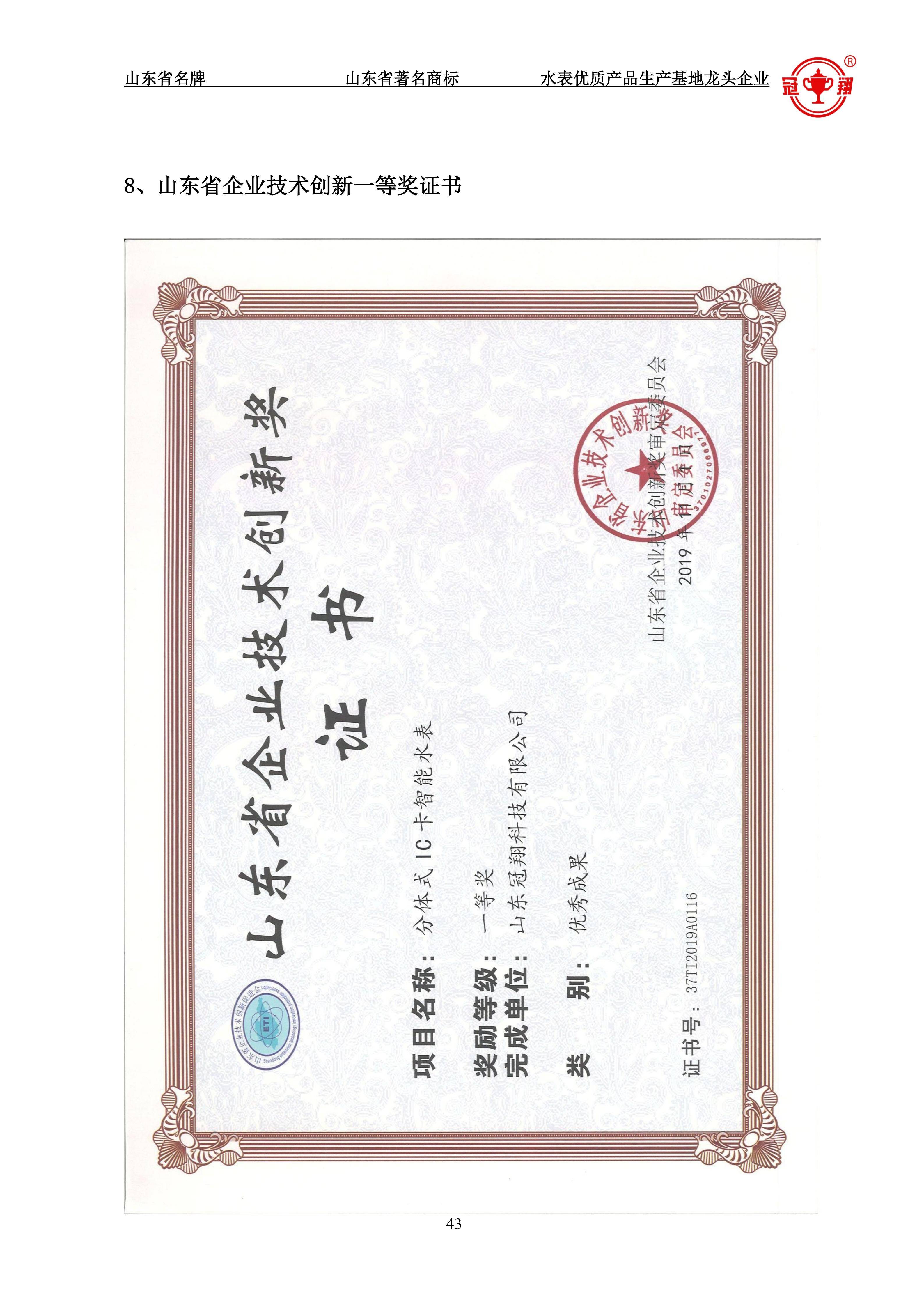 标准制定者,技术底蕴厚:不仅是NB-IoT水表相关国家及行业标准的起草单位之一,还拥有多项国家发明专利,其“冠翔”牌是“山东省著名商标”、“山东名牌”,产品连续多年国抽合格,信任背书强大。